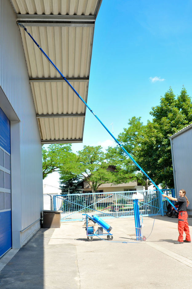 Die VESER Hausmeisterservice GmbH setzt für die Reinigung derartiger Flächen ein spezielles Reinigungssystem ein, das bis zu 20 Meter Höhe mühelos und sicher vom Boden aus anwendbar ist. Ist der Einsatz nicht möglich, kann auf eigene Hubsteiger und Arbeitsbühnen zurückgriffen werden.