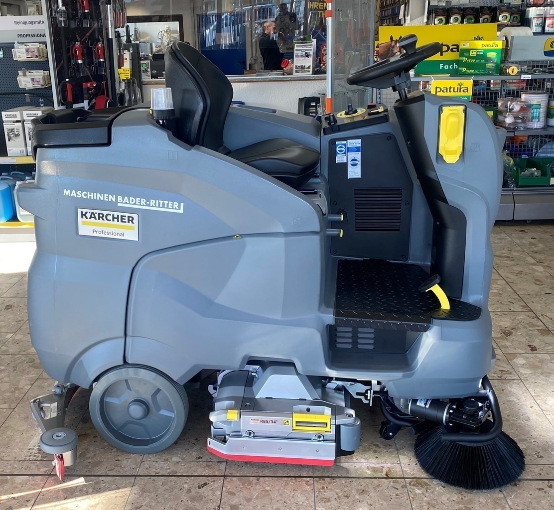 Hierbei handelt sich einmal um eine Aufsitz-/ Scheuersaugmaschine Kärcher B 150 R ADV mit Allradantrieb. Die ideale Wahl zur Reinigung großer, wenig überstellter Flächen, wie z. B. in Lager- und Produktionshallen, Einkaufszentren, Parkhäusern oder Flughäfen.