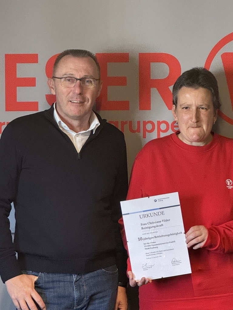 Seit einem Jahrzehnt bereichert Frau Filder unser Unternehmen mit ihrem unermüdlichen Einsatz, ihrer Professionalität und ihrer positiven Einstellung. Ihre wertvolle Arbeit und ihr Engagement haben maßgeblich zu unserem Erfolg beigetragen.