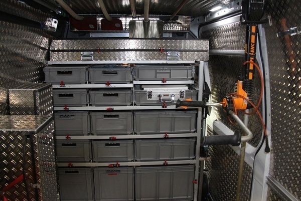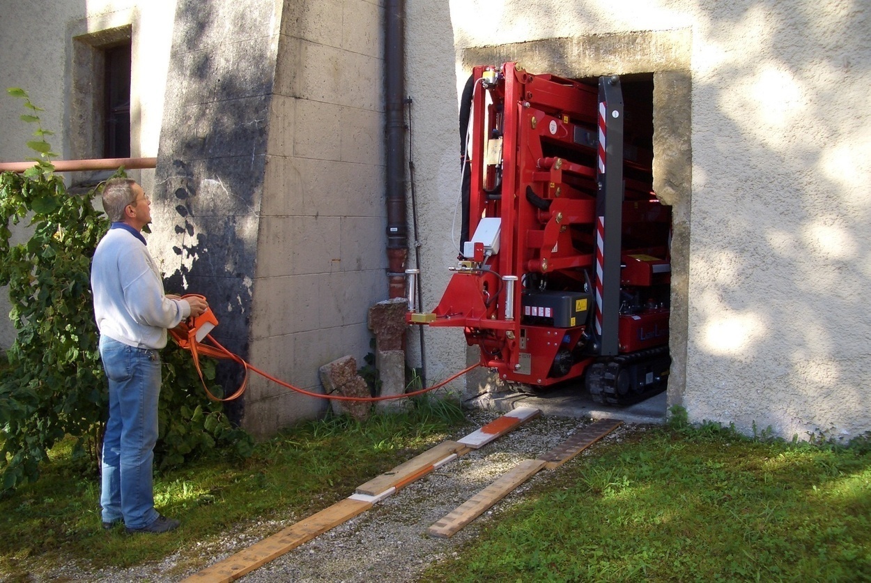 Um größtmögliche Flexibilität bei schwierigen räumlichen Verhältnissen zu gewährleisten, setzen wir kompakte Geräte mit einer Höhe von unter 200cm und einer Durchfahrtsbreite von nur 85cm ein. Des Weiteren sind die Hubsteigerfahrzeuge geländegängig.