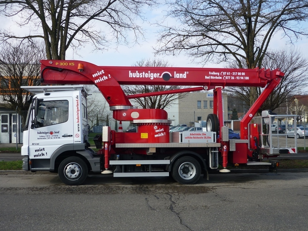 Mit dem Ruthmannsteiger TB270 setzen wir ab sofort das leistungsfähigste Gerät seiner Klasse ein. Die Lkw-Hubarbeitsbühne mit einem Gesamtgewicht von 3,5 t erreicht eine Arbeitshöhe von 27 Meter. Die Reichweite beträgt bis zu 14,8 m und bis zu einer maximalen Arbeitskorblast von 230 kg, was einer Mehrleistung von 30 Kilogramm gegenüber herkömmlichen Modellen entspricht. Das Fahrzeug verfügt über eine schmale Durchfahrbreite von ≥ 2,1 m und eine niedrige Durchfahrhöhe von ≥ 3,0 m, die eine hohe Flexibilität bei den Einsatzorten ermöglicht. Für dieses Fahrzeug reicht die Führerscheinklasse B oder 3.