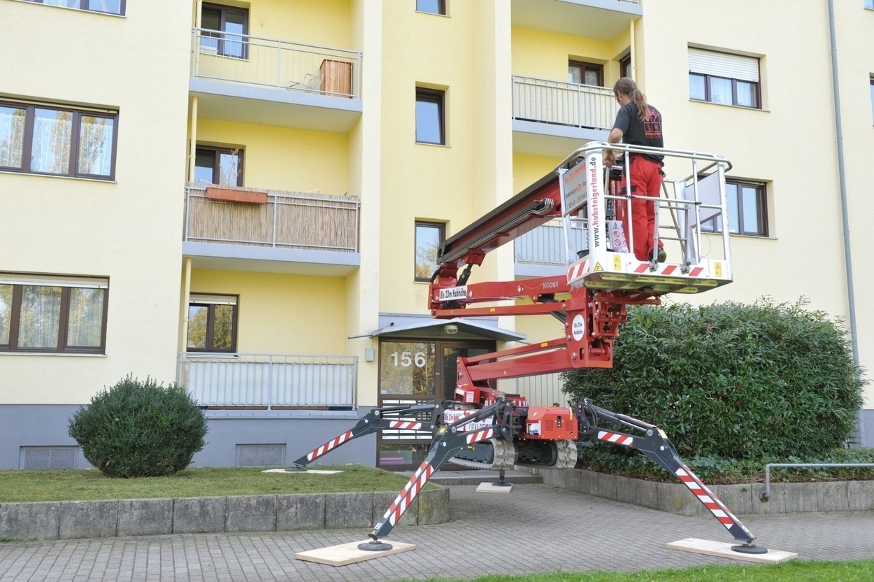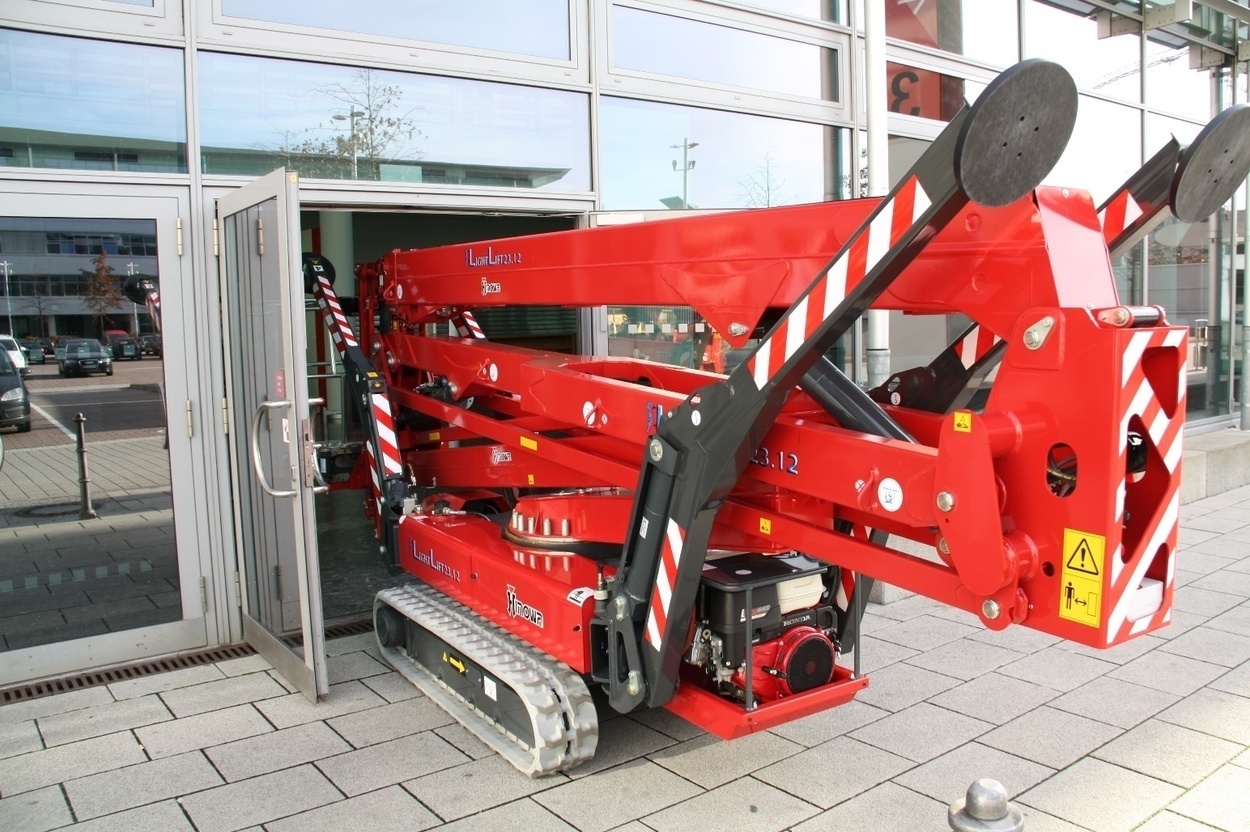Das Unternehmen investierte im August in eine weitere Raupenarbeitsbühne. Diese ist noch leistungsfähiger und verfügt über eine Arbeitshöhe von bis zu 23 m. Auch die neue Arbeitsbühne eignet sich hervorragend für enge Raumverhältnisse, denn die Durchfahrtshöhe ist kleiner als zwei Meter und die Breite unter einem Meter.